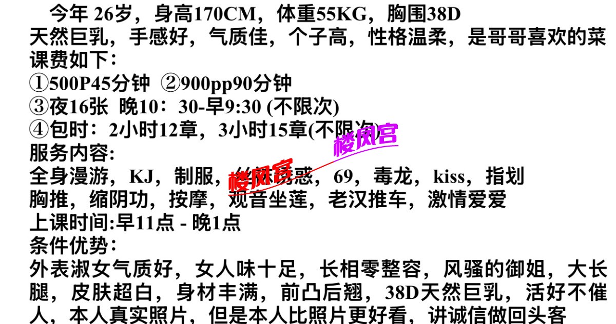 楼凤宫紧急通知:最近冒出许多假APP,宣称美女同城外卖,却是骗充值! 或者以‘QQ聊黄容易封号’为由,要你下载安装安卓APK,却是套你充值! 充值之后血本无归,根本没有妹子! 死骗子们又声称让你再次充值就可以退款前一次的充值,实际上却是骗你充值更多!约妹前必看此联系方式是否名列 本站的“骗子专贴”(全网独一无二!每天更新)!