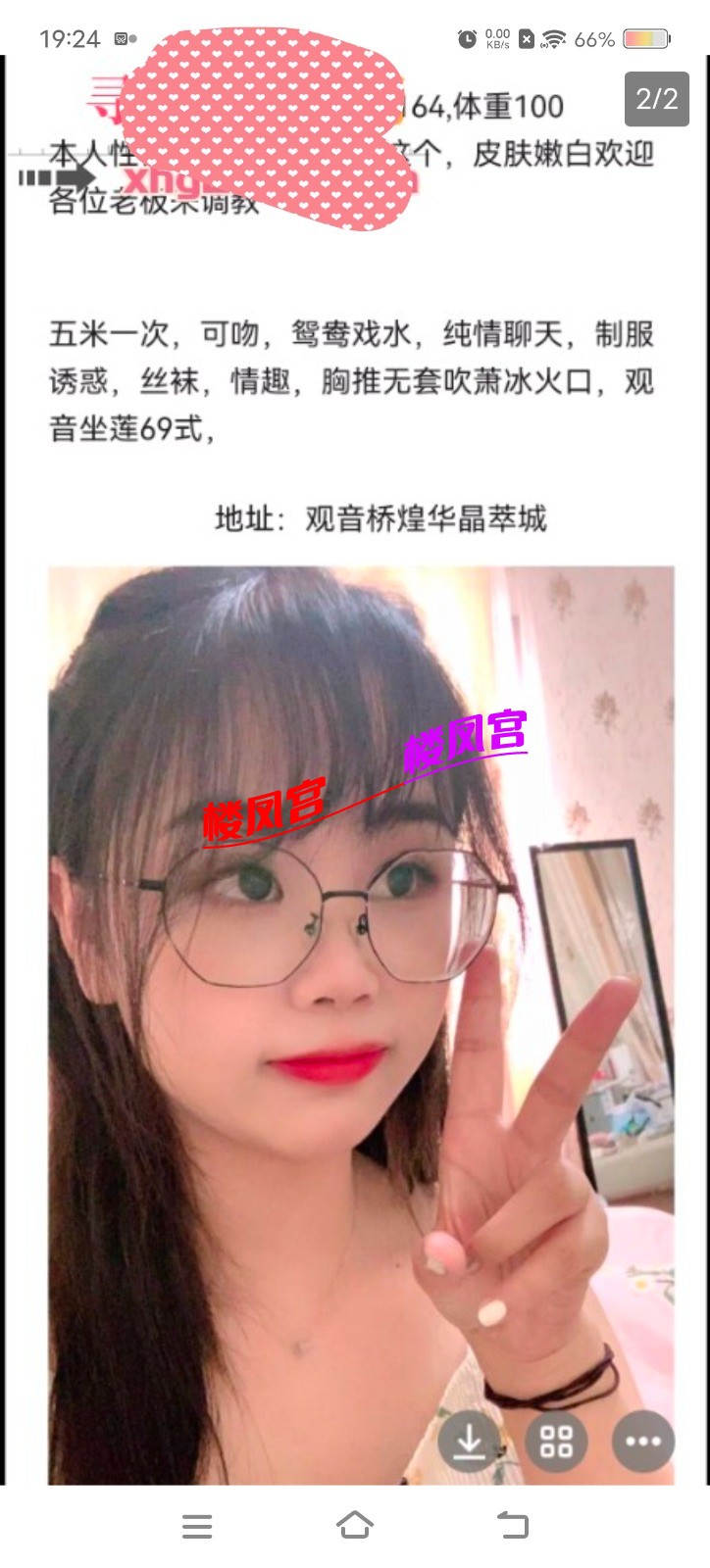 楼凤宫紧急通知:最近冒出许多假APP,宣称美女同城外卖,却是骗充值! 或者以‘QQ聊黄容易封号’为由,要你下载安装安卓APK,却是套你充值! 充值之后血本无归,根本没有妹子! 死骗子们又声称让你再次充值就可以退款前一次的充值,实际上却是骗你充值更多!约妹前必看此联系方式是否名列 本站的“骗子专贴”(全网独一无二!每天更新)!