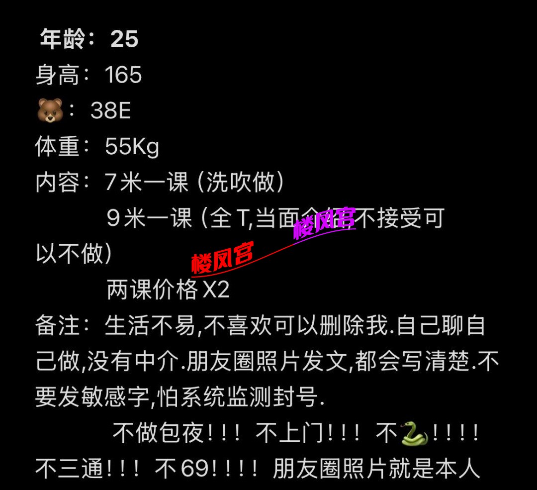 楼凤宫紧急通知:最近冒出许多假APP,宣称美女同城外卖,却是骗充值! 或者以‘QQ聊黄容易封号’为由,要你下载安装安卓APK,却是套你充值! 充值之后血本无归,根本没有妹子! 死骗子们又声称让你再次充值就可以退款前一次的充值,实际上却是骗你充值更多!约妹前必看此联系方式是否名列 本站的“骗子专贴”(全网独一无二!每天更新)!